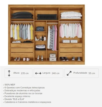 Roupeiro Mônaco 6 portas – 2,40 Mts – Cor Cinamomo