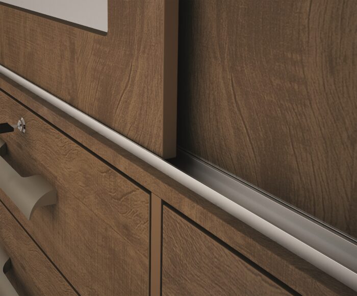 - Sistema exclusivo de Trilho inferior de alumínio com sistema anti-queda nas portas