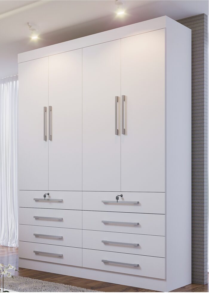 Roupeiro Mônaco 4 portas e 8 gavetas – 1,60Mts