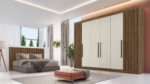 Roupeiro Potente 6 portas – 2 Braúna Ripadas / 4 Off White lisas- 2,50Mts