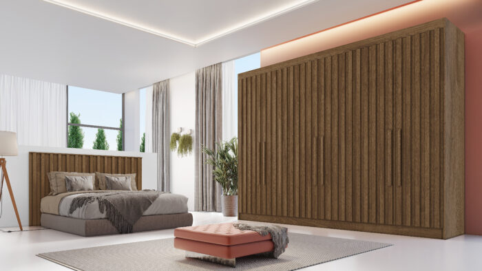 Roupeiro Potente 6 portas – 2 Peroba Ripadas / 4 Off White lisas- 2,50Mts